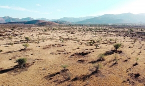 온두라스 한 지역의 칼라바쉬 나무들이 바싹 마른 풍경. 기후 변화와 열악한 물 상태는 농부들과 농촌 지역 사회에 파괴적인 영향을 미치며, 건조한 지역을 사막으로 변화시키고 있습니다.