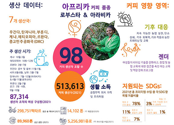 그리고 공정무역이 제공하는 지속가능한 생산, 트레이닝, 건강 프로그램에 대한 접근성 및 농민 자녀를 위한 개선된 조건에 의해 공정무역 인증 협동조합의 회원은 60% 증가하였습니다.