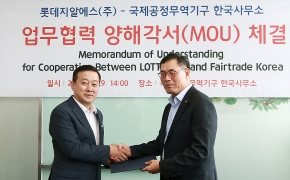 [중소기업뉴스=이권진 기자] 롯데GRS(대표 남익우)와 국제공정무역기구 한국사무소(대표 지동훈)는 지난 29일 공정무역 활성화를 위한 양자간 양해각서를 체결하고 공정무역 인증 제품을 출시키로 했다.