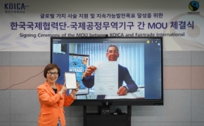 그러면서 “이번 협력을 통해 한국 내의 공정무역 관련 사회적 기업, 청년기업의 글로벌 육성 뿐만 아니라, 협의 중인 공정무역 펠로우쉽, 인큐베이션, 공정무역 호텔, 박람회, 원료소싱지원사업 협력 등을 통해 코이카를 중심으로 한국 내의 관련 기업 및 기관들이 UN의 지속가능 개발 목표에 한 걸음 더 다가서는 큰 계기가 될 것”이라고 평가하며 이번 협력에 대한 기대감과 지지를 표했다.