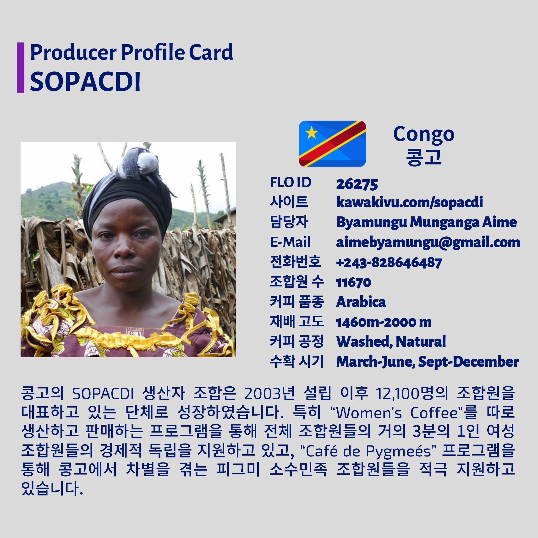 | 첨부된 생산자 카드는 제21회 서울카페쇼 공정무역부스에 직접 상주하며 B2B 미팅과 Cupping을 진행할 아프리카 및 아시아 대륙 생산자들의 정보를 담았다. B2B 미팅 및 Cupping 신청안내 페이지 (바로가기) 공정무역 부스는 코엑스 3층 Hall C, 부스번호 C325에 위치해 있으며, 전 세계 32개국, 656개 공정무역인증 커피생산자 조합 중 3개 대륙 약 20여개 이상의 생산자 조합 대표들이 직접 참여할 예정이다. ![]() ![]() ![]() ![]() ![]() ![]() |