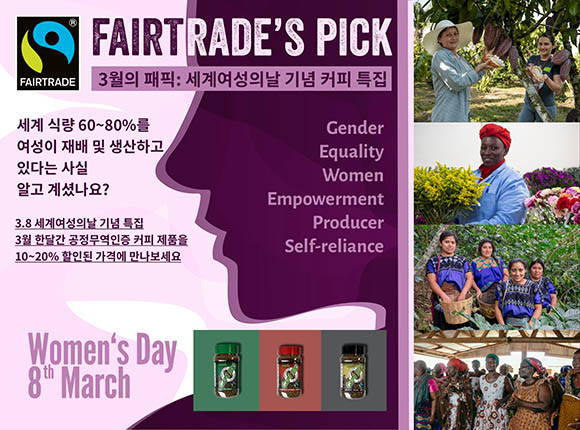 ![]() 패어트래이드 덕후, 패덕님들 International Women's Day 세계여성의날 특집으로 3월의 패픽이 찾아왔습니다. 성평등, 여성 역량 강화, 여성 생산자 자립을 위한 공정하고 적절한 임금 보장 등 여성을 위해 앞장서는 공정무역인증 제품 구매로 세계여성의날을 응원하고 동참해보는 것은 어떨까요? 딱 한 달만 공정무역인증 커피 제품을 특별한 가격에 드려요 (더 보기) ![]() 공정무역 현장의 성평등과 여성 역량강화 임팩트 (더 보기)